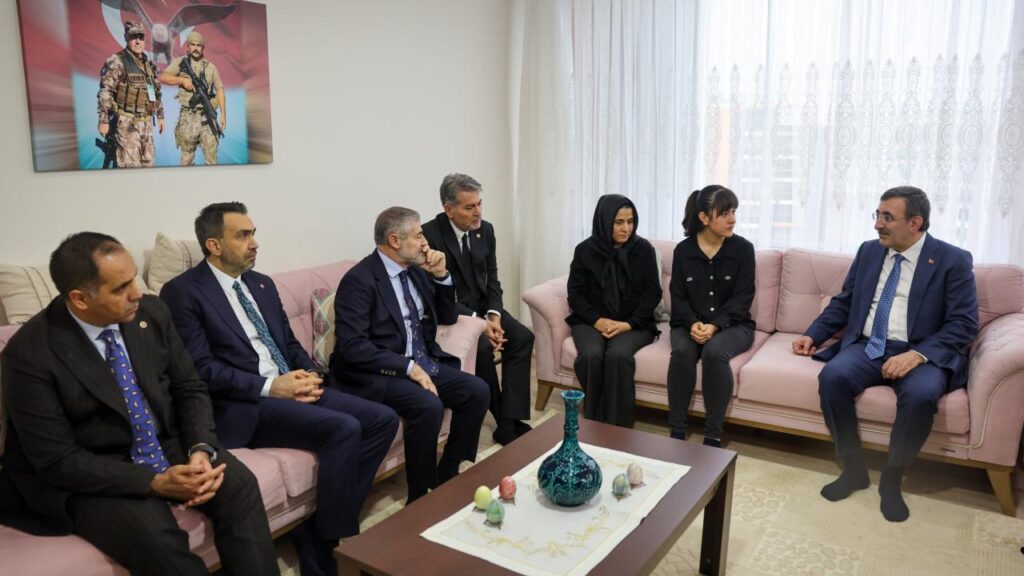 Cumhurbaşkanı Yardımcısı Cevdet Yılmaz, Mersin’de anlamlı bir ziyarette bulunarak, şehit aileleriyle bir araya geldi. 2018 yılında Mersin’de jandarma ekipleriyle ortaklaşa düzenlenen arama, tarama, pusu ve keşif çalışmaları sırasında kalp krizi geçirerek şehit olan özel harekat polisi Ali Karapınar ile 2025’te aynı kentte atış eğitimi sırasında meydana gelen kaza sonucu şehadete ulaşan oğlu özel harekat polisi Mustafa Karapınar’ın ailesini Mezitli’deki evinde ziyaret etti.