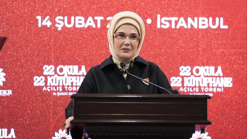 Paylaşımda, Üsküdar Mihrimah Sultan Kız Anadolu İmam Hatip Lisesi’nde düzenlenen bir programa ilişkin görüntülere de yer verildi. Programda Emine Erdoğan’ın konuşması da bulunuyordu. Bu konuşmada, kütüphane projelerinin önemine ve çocukların kitaplarla kurduğu bağın değerine değinildi.