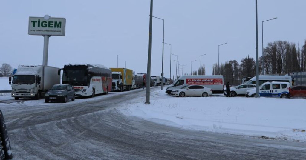 Sivas’ta etkili olan kar yağışı, Sivas-Malatya karayolunu ulaşıma kapattı. Demirören Haber Ajansı’nın haberine göre, yoğun kar yağışı ve tipi nedeniyle yolun kapanması sonucu Malatya yönüne giden araçlar, Ulaş ilçesi girişinde bekletiliyor. Özellikle yolcu otobüsleri ve ağır tonajlı araçlar olmak üzere birçok araç, ilçeye giriş yapamadan beklemek zorunda kaldı. Bu durum, yollarda uzun araç kuyruklarının oluşmasına neden oldu.