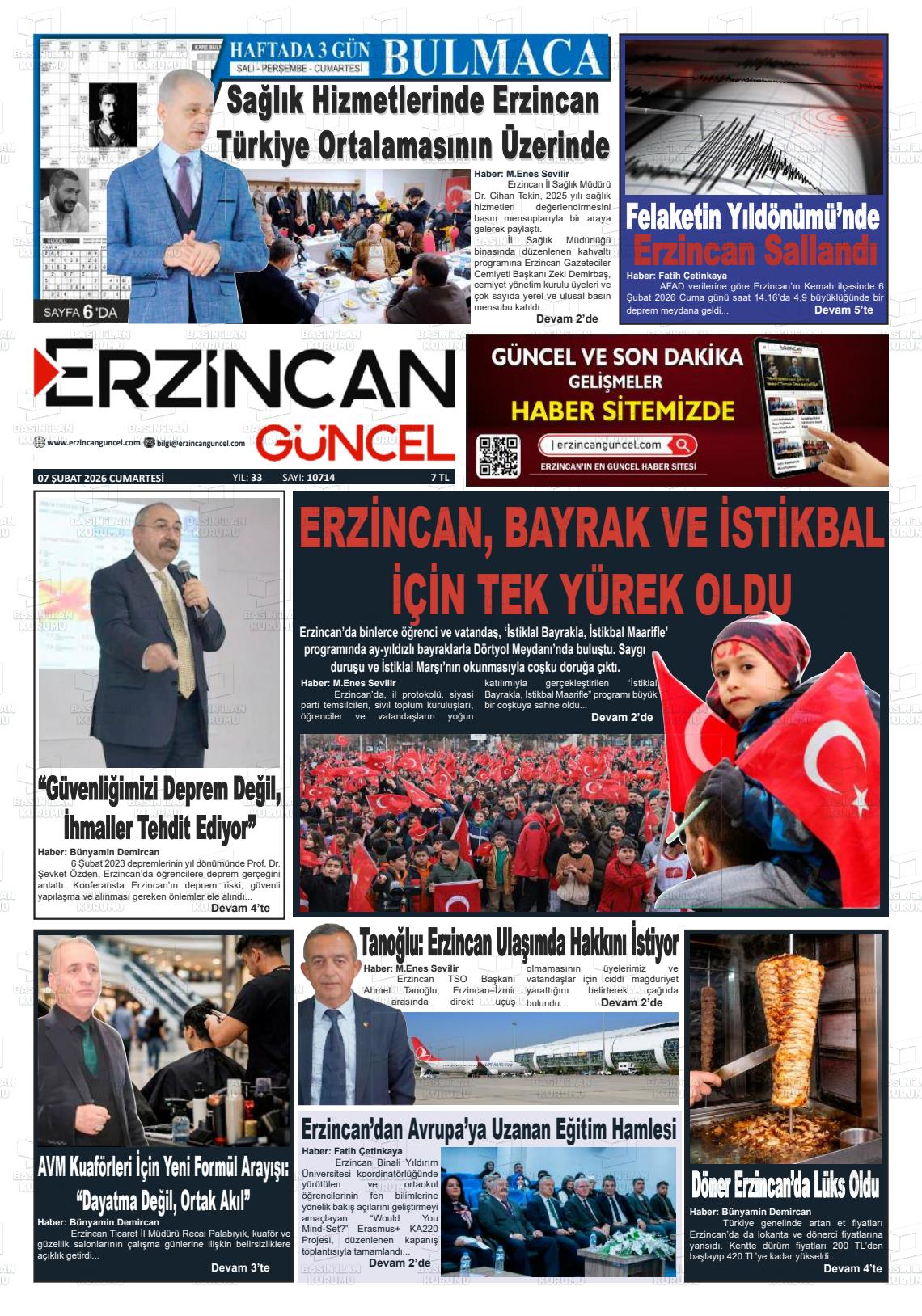 07 Şubat 2026, Cumartesi Günü Manşeti