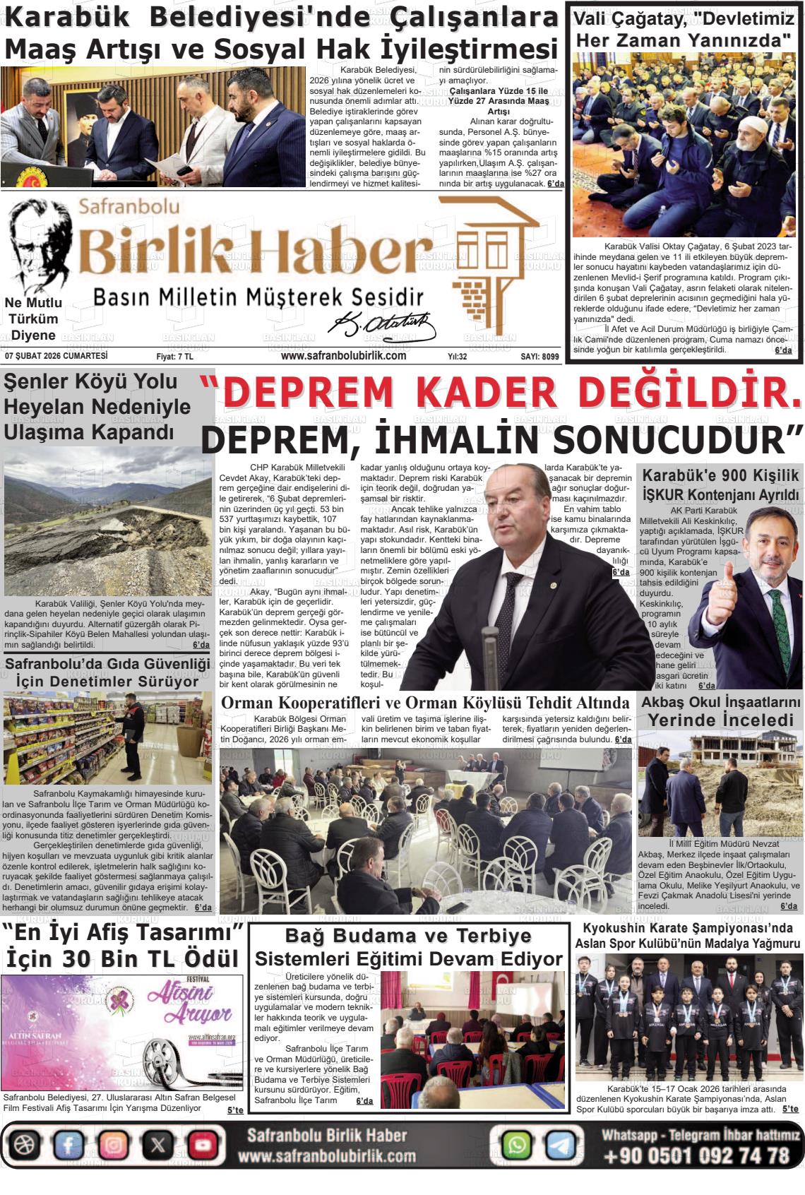 07 Şubat 2026, Cumartesi Günü Manşeti