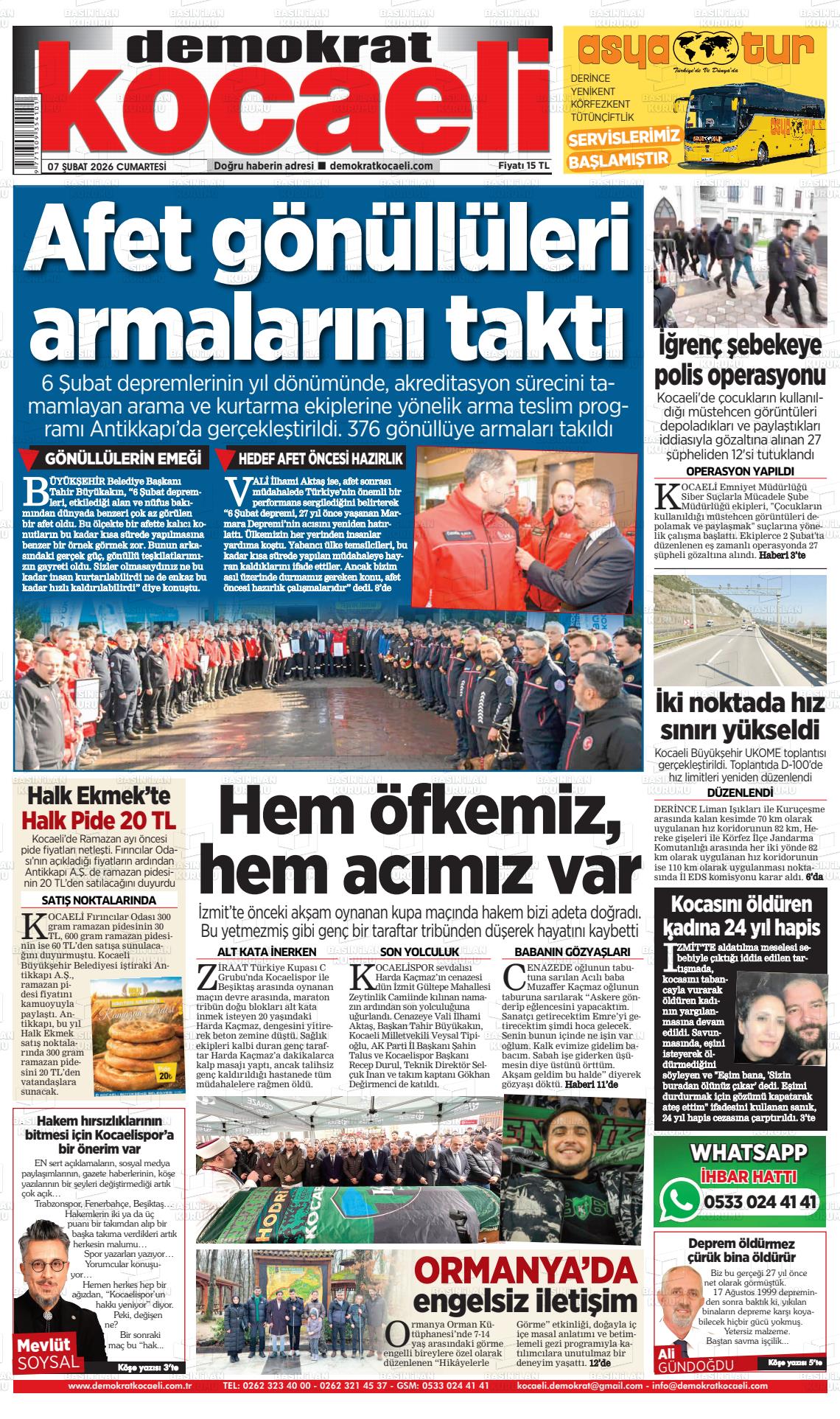 07 Şubat 2026, Cumartesi Günü Manşeti